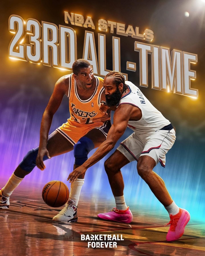 2025-11-15 16:12:07里程碑!哈登生涯抢断数超越魔术师 独占NBA历史第23位!